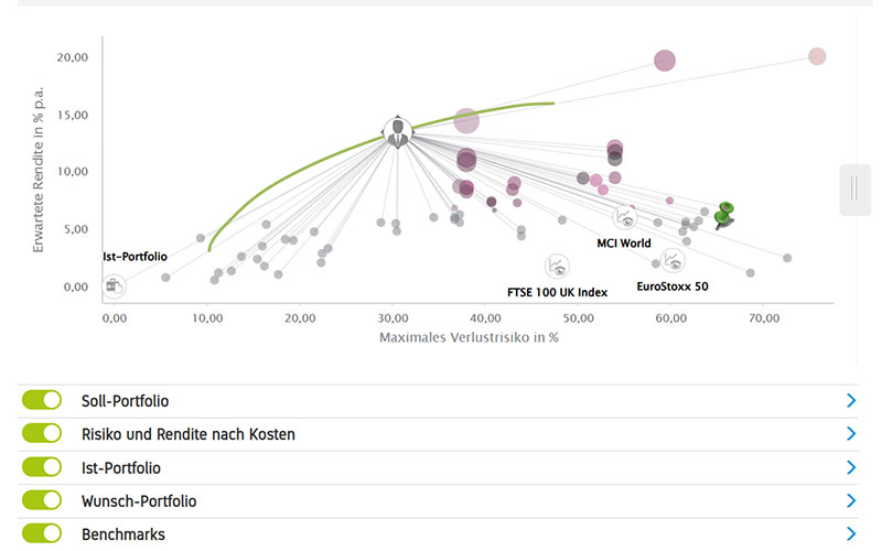 Der Stresstest. Wir identifizieren versteckte Kosten, Klumpenrisiken und ineffiziente Hausprodukte. Mit wissenschaftlich fundierten Methoden zeigen wir Ihnen schwarz auf weiß, wo Ihr Depot heute steht und wie viel Rendite Sie durch teure Provisionen aktuell verlieren